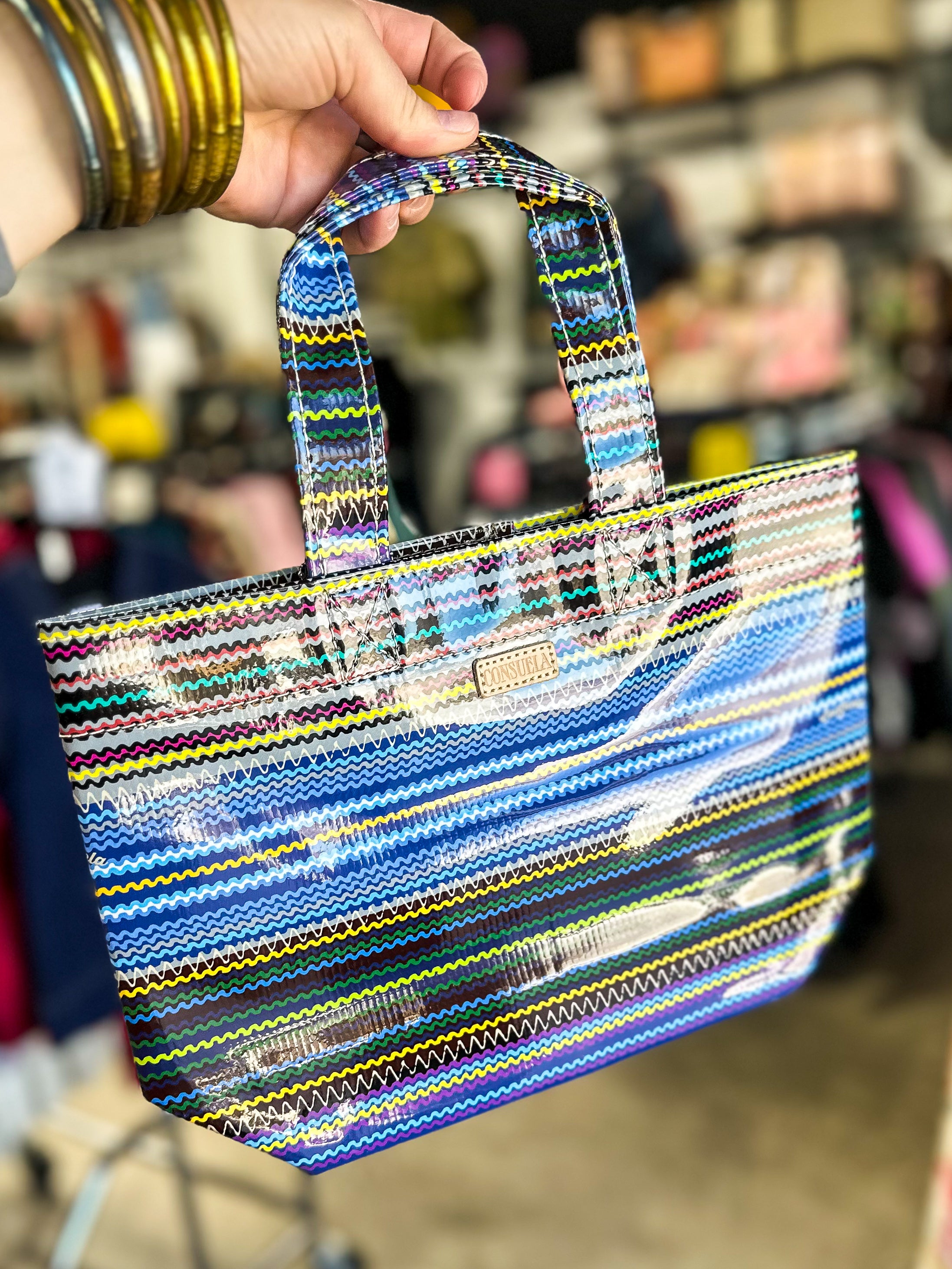 The Mini Bag was made for the little moments- carrying keys and a snack for a walk on the beach, lunch and a cold brew to the office, or for waiting patiently in the car, folded neatly under your seat. This bag made of easy-to-clean ConsuelaCloth™ is the smallest of our colorful utility totes.