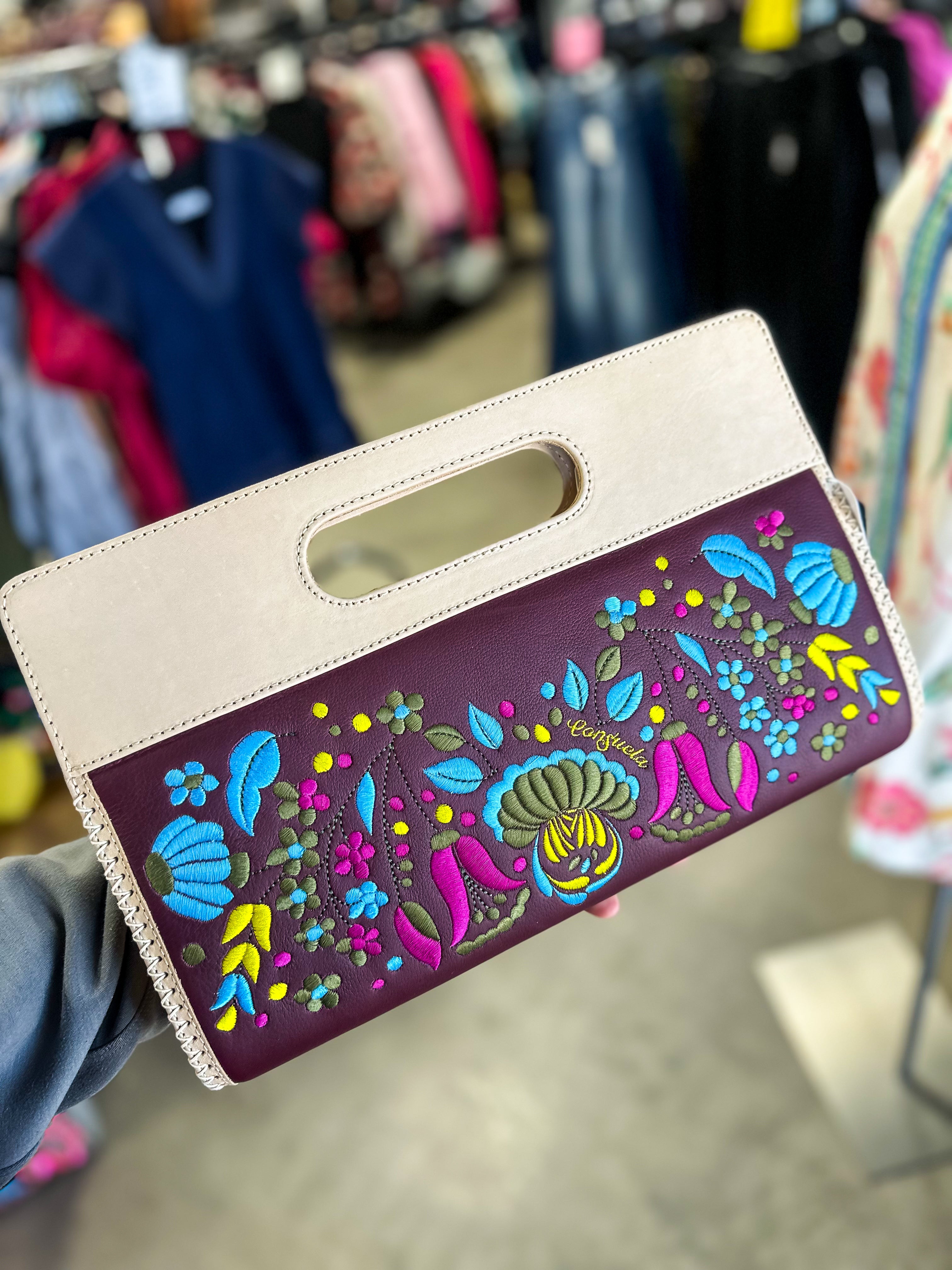 Supercharge your day with our newest clutch! This Diego leather-trimmed, hand-held clutch has plenty of storage for a bold and chic style.