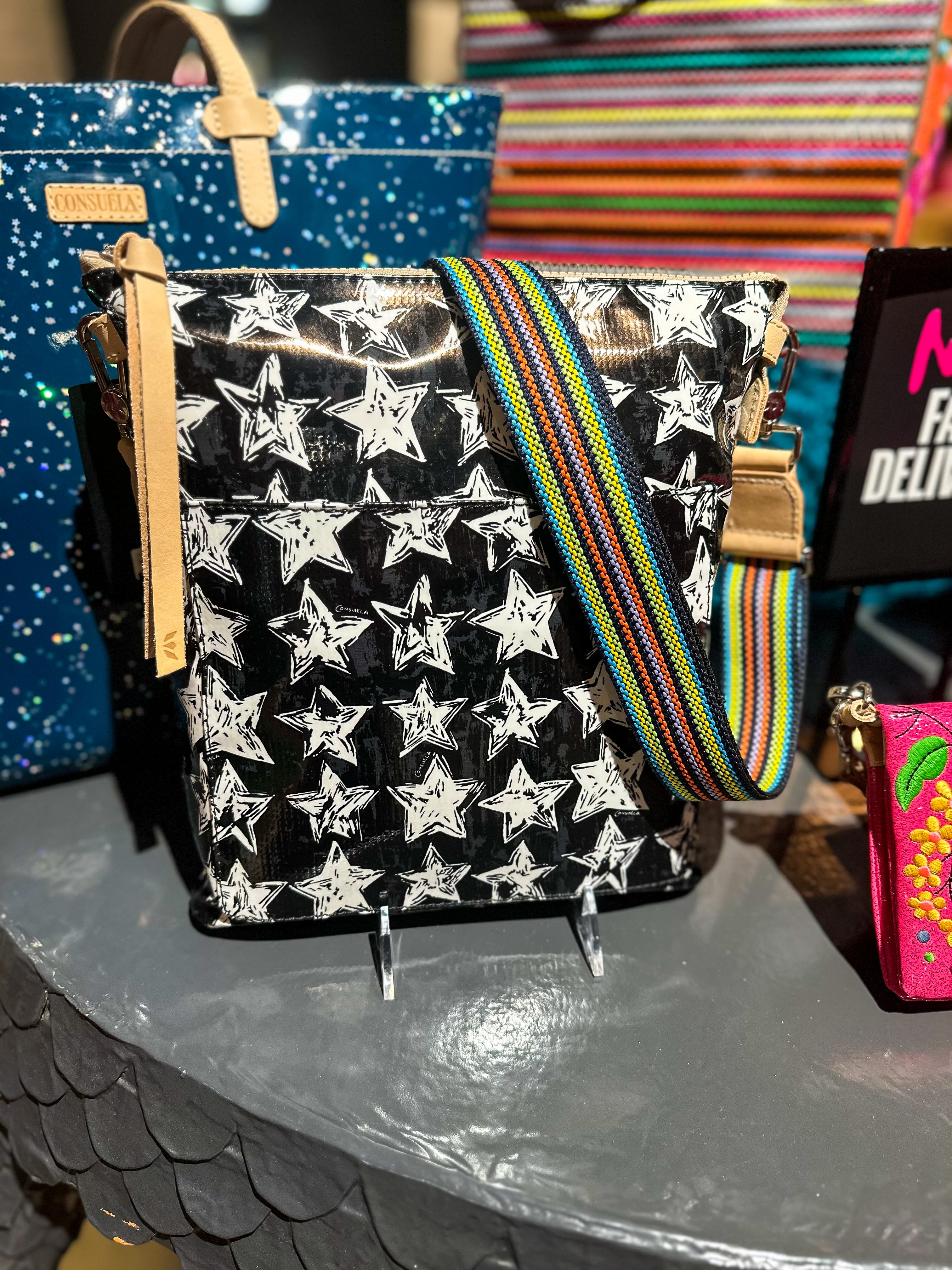 Our new, vertical crossbody has an extra front slip picket and a side zip pocket to streamline your busy life in style. Zip it up and go!’