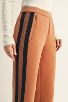 These athletic-style pants feature an elastic waistband for a secure, comfortable fit during any activity. Designed with zippered side pockets, they provide safe storage for essentials, while the stripe trim along the sides adds a sleek, sporty look. Ideal for workouts or casual wear, these pants combine functionality with style.