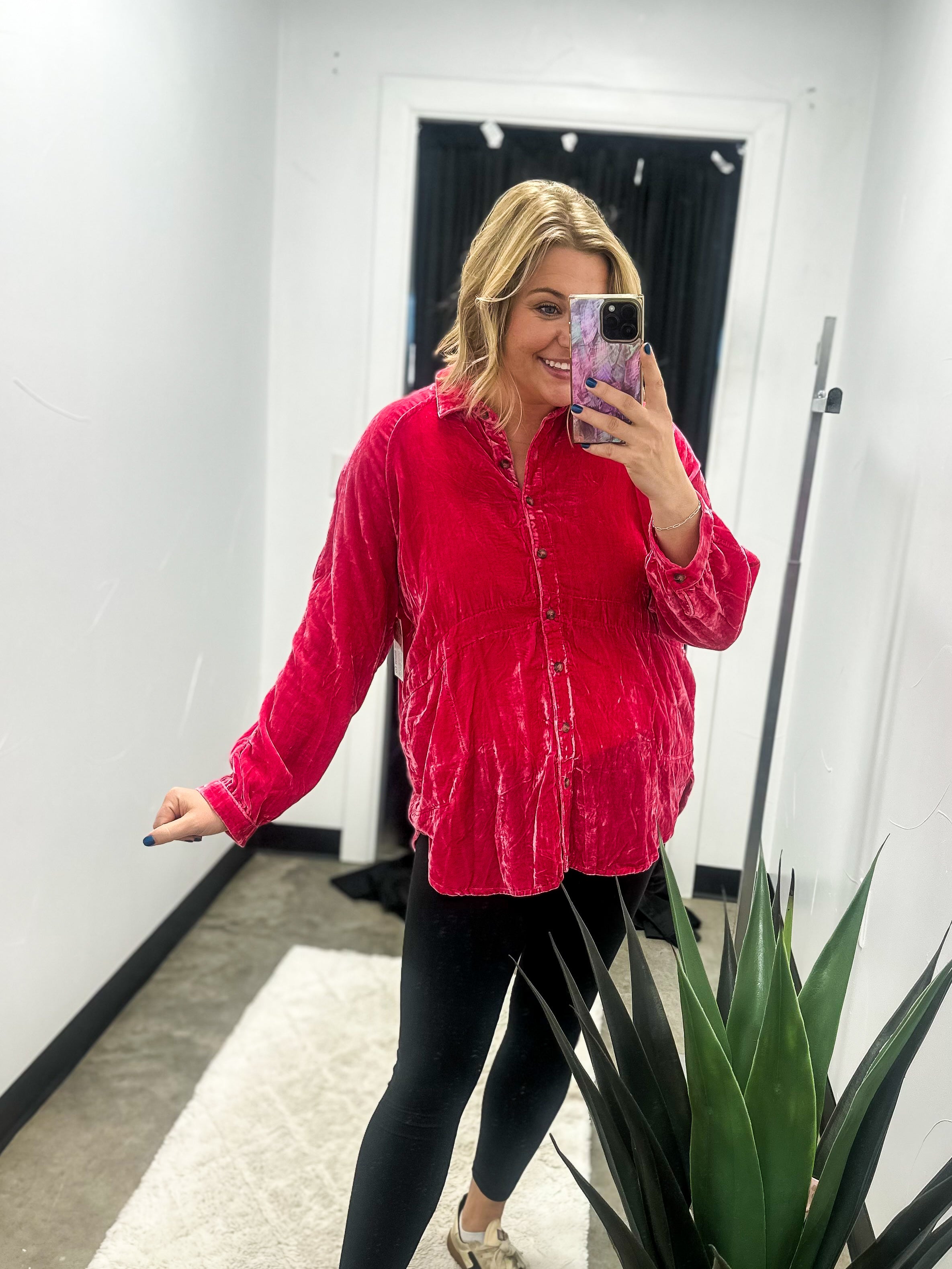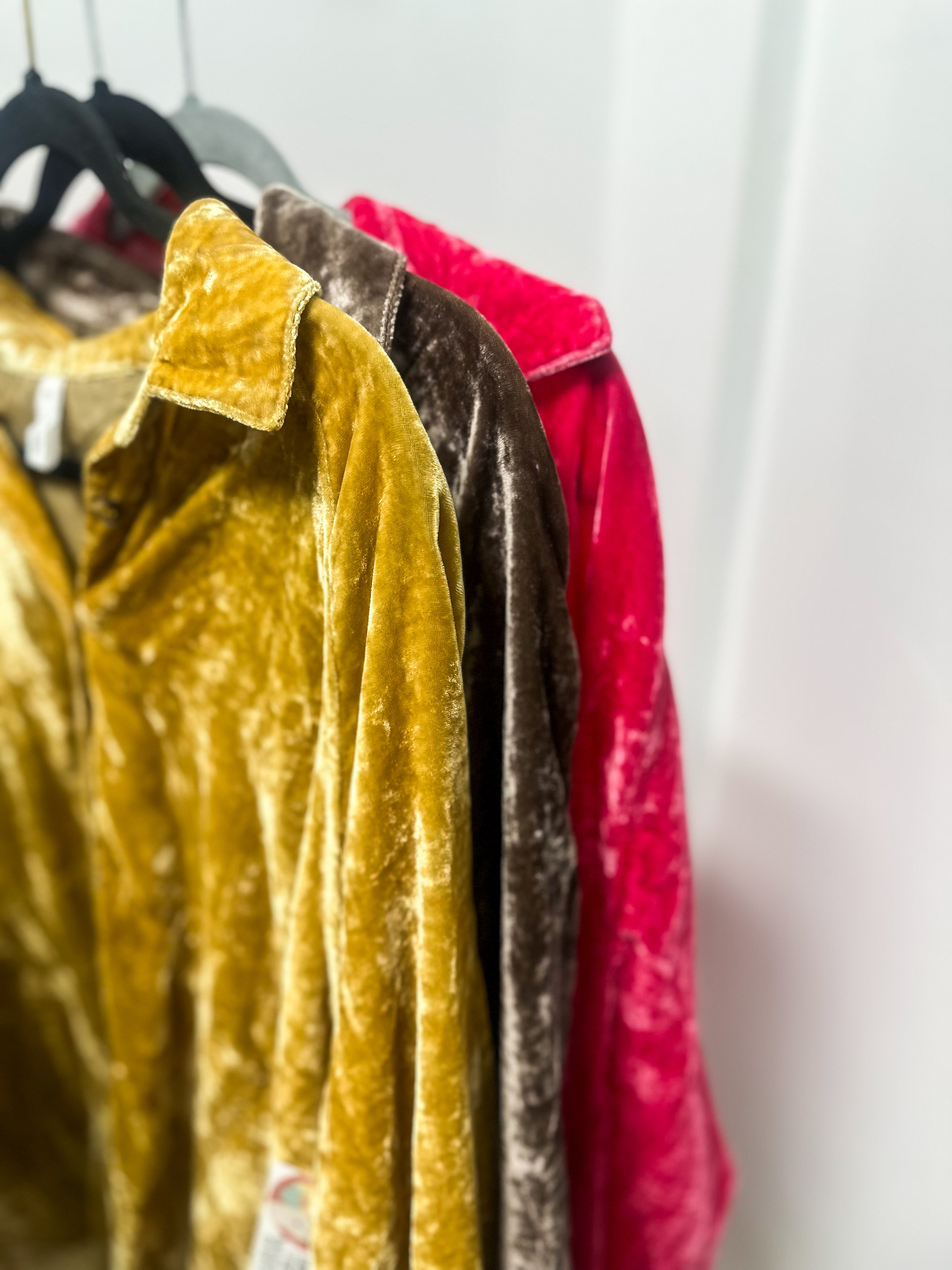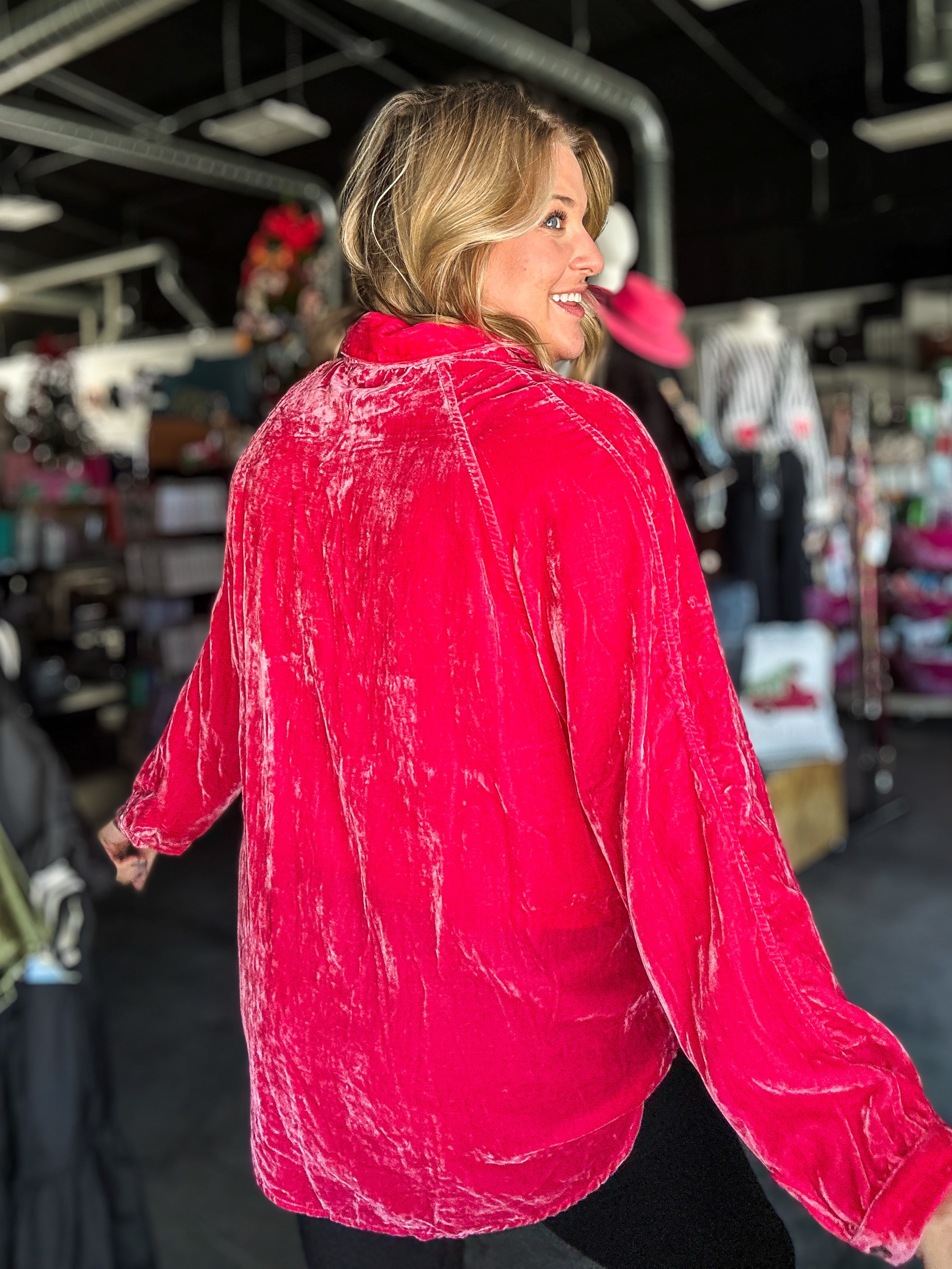 OVERSIZED VELVET BUTTON-UP SHIRT WITH POCKETS